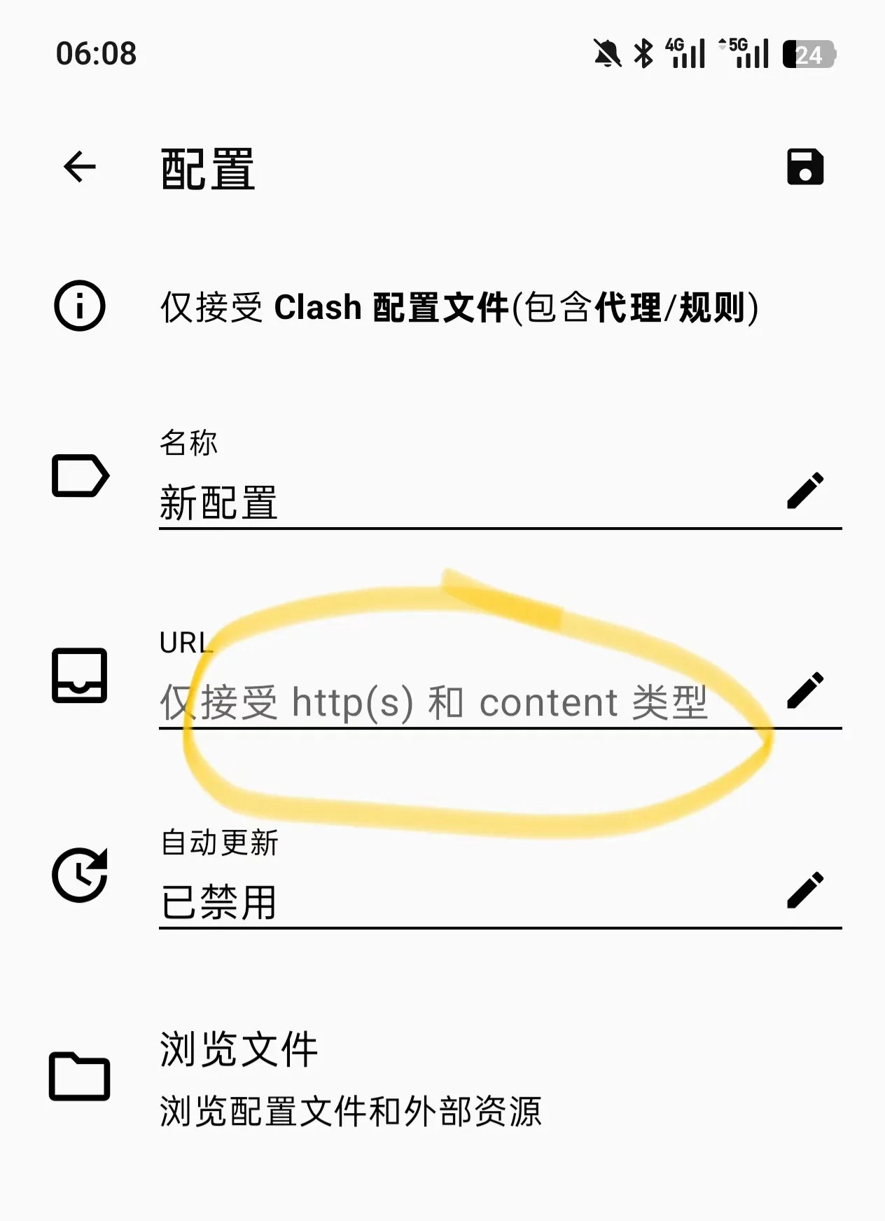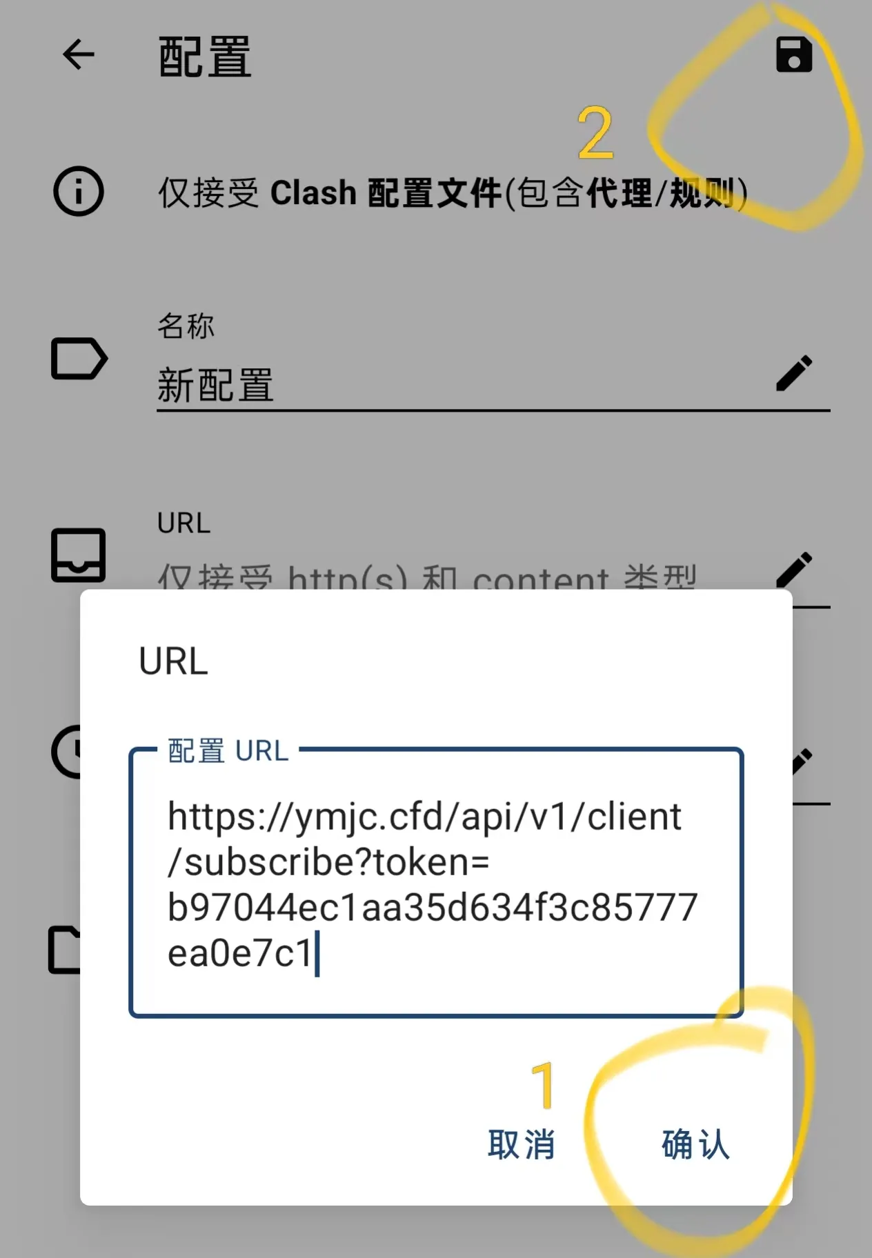 4.点击从URL获取配置文件,复制这段链接粘贴进去